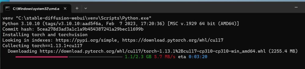b.接下来是安装各种依赖,这一步也是直接从github拉取,因此网络不好的需要参考上面2.1的修改方法,打开目录下的launch.py,将所有类似https://github.com/xxx的网址替换