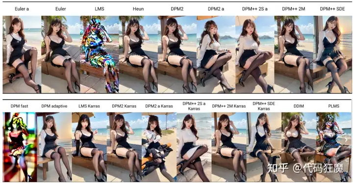 下图为不同采样方法在20步时的对比图,一般真人生成笔者都采用前缀是DMP++的几个,采样方法没有绝对,在一种采样方法效果不好的时候可以尝试另外一种