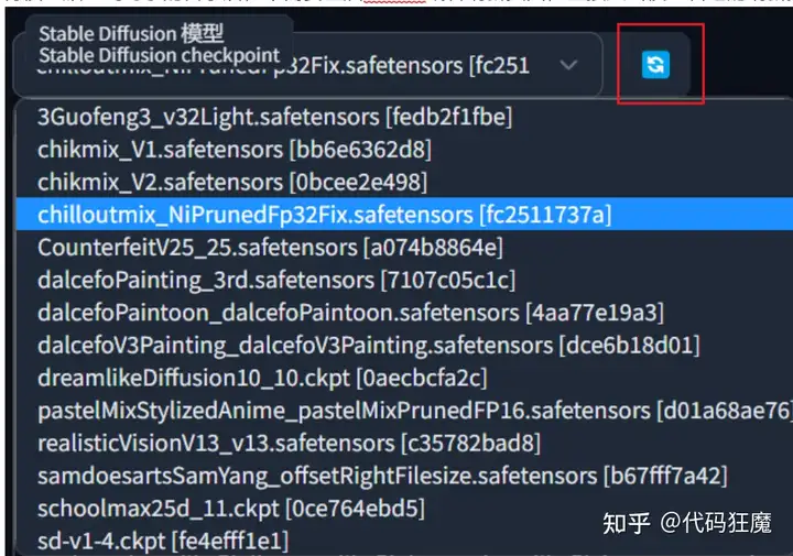 之前的章节中提到过如何下载模型,此处简要说明下,去下面地址下载chilloutmix_NiPrunedFp32Fix.safetensors文件后放到stable-diffusion-webui/models/Stable-diffusion目录下