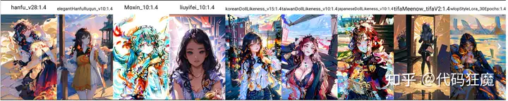 - hanfu_v28:1.4,elegantHanfuRuqun_v10:1.4,Moxin_10:1.4,liuyifei_10:1.4,koreanDollLikeness_v15:1.4,taiwanDollLikeness_v10:1.4,japaneseDollLikeness_v10:1.4,tifaMeenow_tifaV2:1.4,wlopStyleLora_30Epochs:1.4