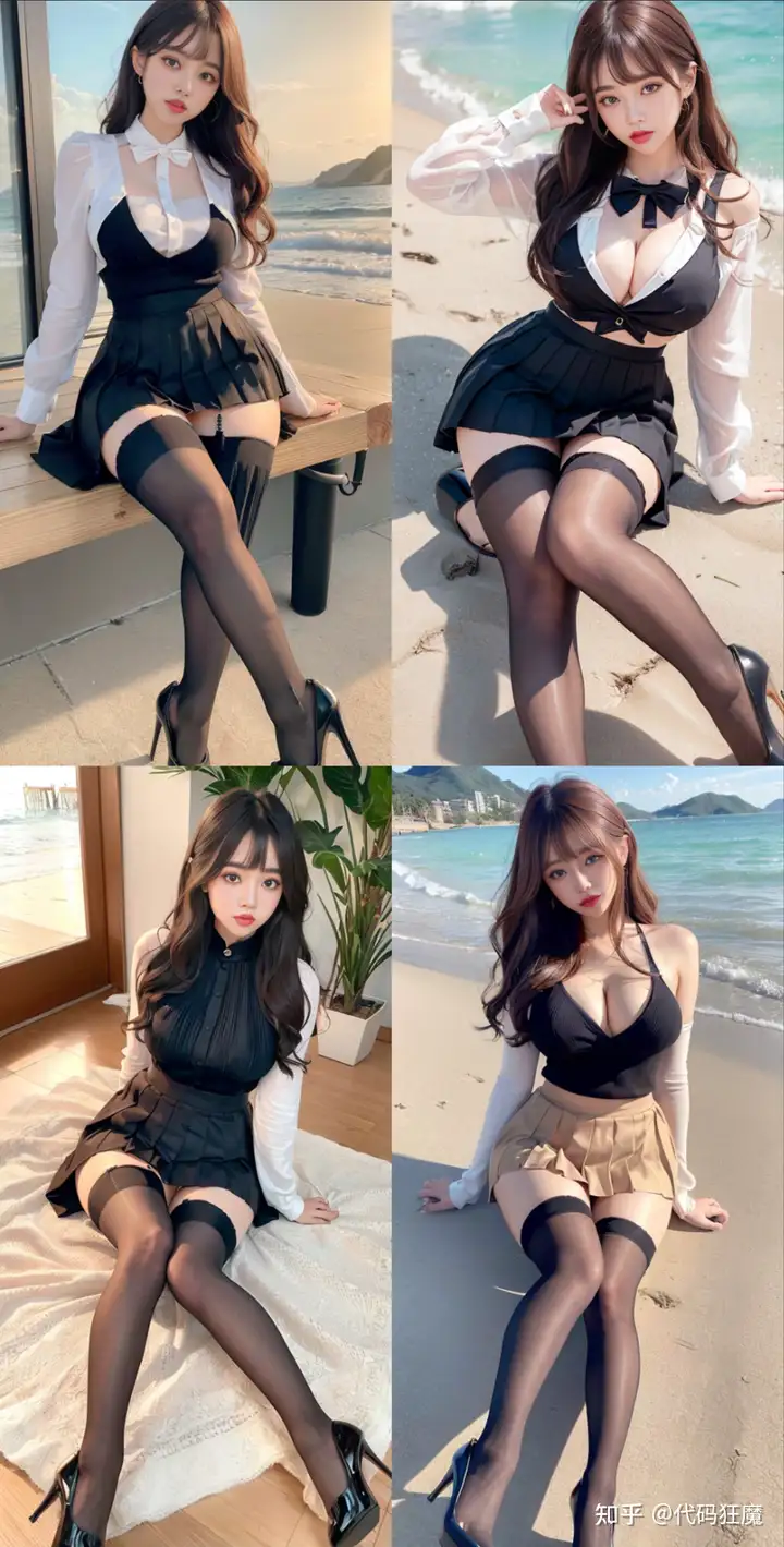 <lora:koreanDollLikeness_v15:0.33>, <lora:fte_futuanerV1:0.1>, <lora:aespaKarina_aespaKarina2023128DB:0.5>, <lora:naeun_V10:0.2>, <lora:iu_V35:0.1>, <lora:chilloutmixss_xss10:0.2>, ulzzang-6500, (aegyo sal:1.4), best quality, ultra high res, (photorealistic:1.4), (beautiful Korean woman:1.0), (Kpop idol:1.0), (wavy hair:1.4), (bangs:1.4), masterpiece, illustration, an extremely delicate and beautiful, extremely detailed, CG,unity, 8k wallpaper, Amazing, finely detail, masterpiece, official art, extremely detailed CG unity 8k wallpaper, absurdres, incredibly absurdres, ultra-detailed, highres, extremely detailed, beautiful detailed girl, extremely detailed eyes and face, beautiful detailed eyes, light on face, (looking at viewer:1.4), wide hips, thick thighs, (1 girl), detailed shiny skin, (looks like Amber Heard:1.2), natural breast, beach of sea, sunset, (full shot:1.6), (pleated skirt, 80 denier stockings, high heels clothes:1.4), cross legs