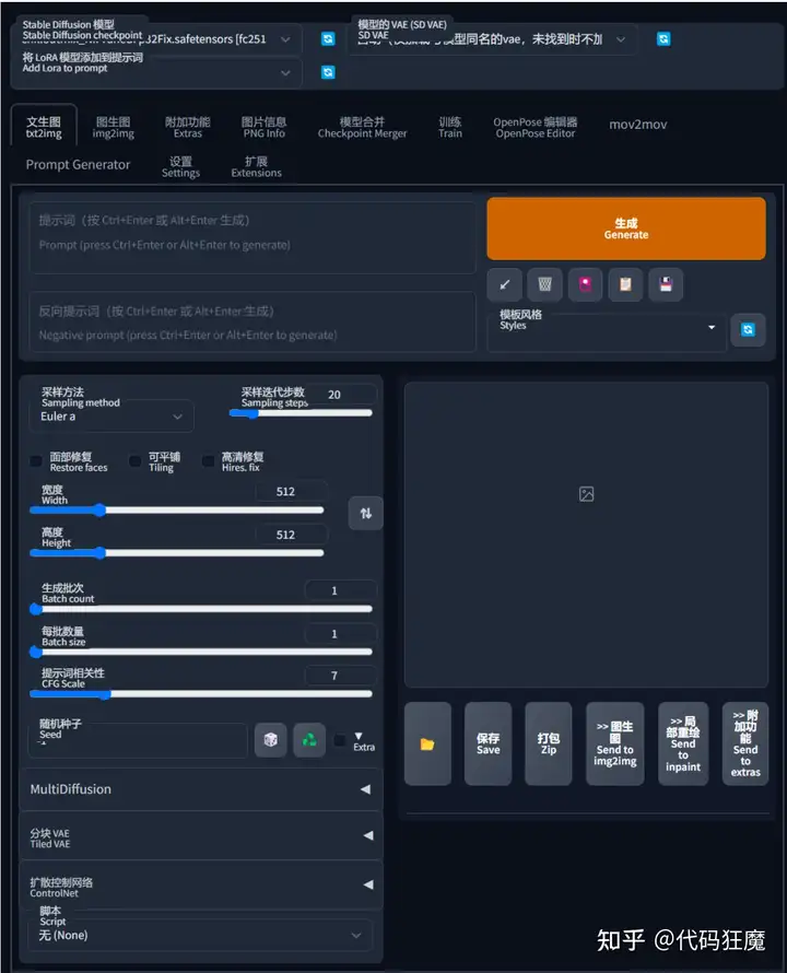 下面将介绍文生图板块所有的参数,因为写tag本身可以称之为关键词工程学,后续会详细说明,此处先把所有参数过一遍